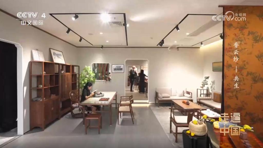 近日,央视中文国际频道《走遍中国》重磅推出三集专题系列片《香云纱》(《香云纱・天成》《香云纱・共生》《香云纱・求索》),设计学院教师梁耀明打造的两项设计空间作品——2022年落成的罗浮宫漫朴家具岭南大宅旗舰店、2024年完成的唐贤香云纱艺术馆改造,成为《香云纱・共生》《香云纱・求索》两集的核心取景地,梁耀明老师受邀出镜,其设计的漫朴景致茶空间系列家具亦同步呈现。