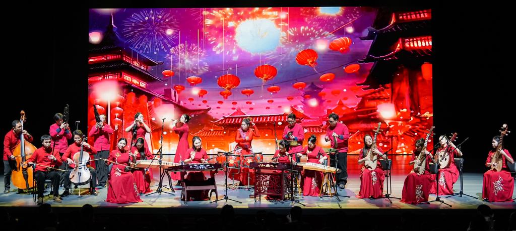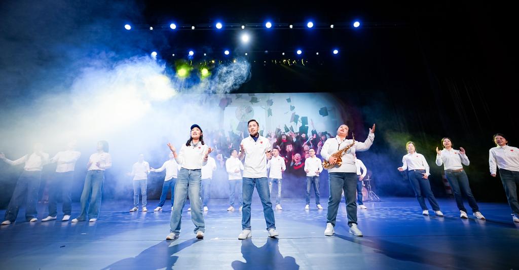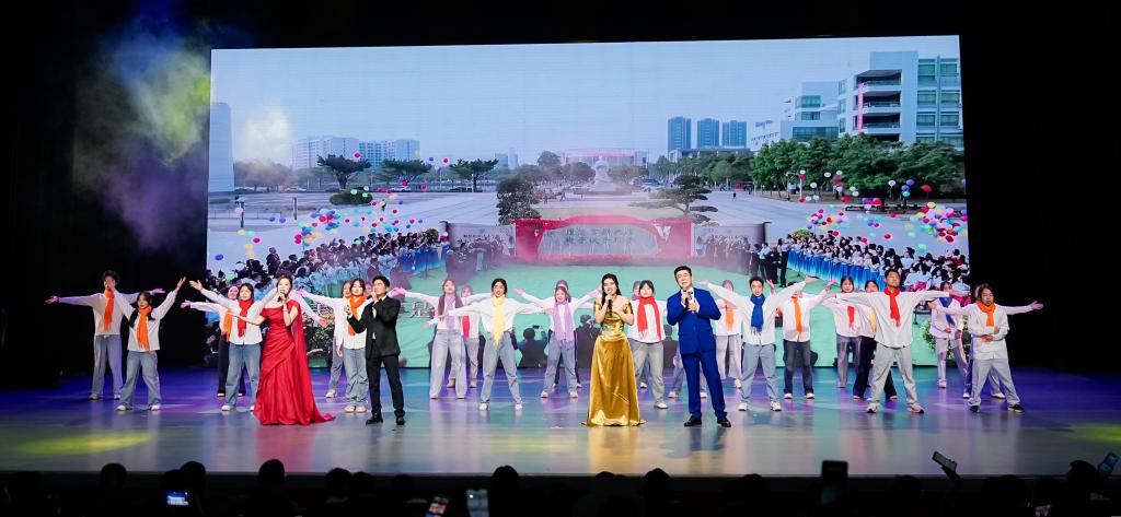 在“筑梦未来”篇章,舞蹈《给未来的信》用优美的舞姿寄托对美好明天的憧憬;二胡独奏《万马奔腾》以激越的旋律传递奋勇向前的精神;中国舞《元夕》古韵流转,展现传统节庆的典雅之美;合唱《我们都是追梦人》昂扬向上,凝聚起全体师生同心追梦、共创未来的坚定信念,引发强烈共鸣。演出尾声,全体演员与观众合唱《歌唱祖国》,将现场气氛推向高潮。