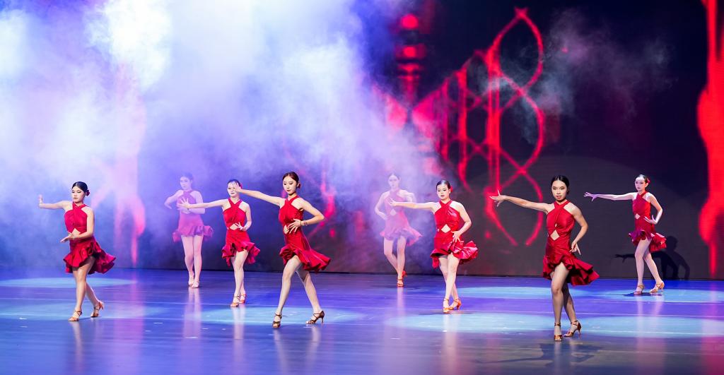 夜幕下的顺德演艺中心灯火璀璨,大剧院内宾朋满座,洋溢着浓浓的师生情、同窗谊。晚会在激昂澎湃的打击乐《鼓舞飞扬》中拉开序幕,铿锵的节奏瞬间点燃全场热情;民乐合奏《金蛇狂舞》《步步高》以欢快旋律演绎经典,营造出喜庆祥和的新年气氛。在“青春之火”篇章,小组唱《有我》唱出时代精神,街舞《舞动青春》展现蓬勃朝气,走秀《模力无限》彰显青春风采,拉丁舞《Latin girl》闪耀活力光华;合唱《共赴山海》抒发顺职大“小海豚”志愿者发扬志愿精神、践行奉献初心的风采与担当。