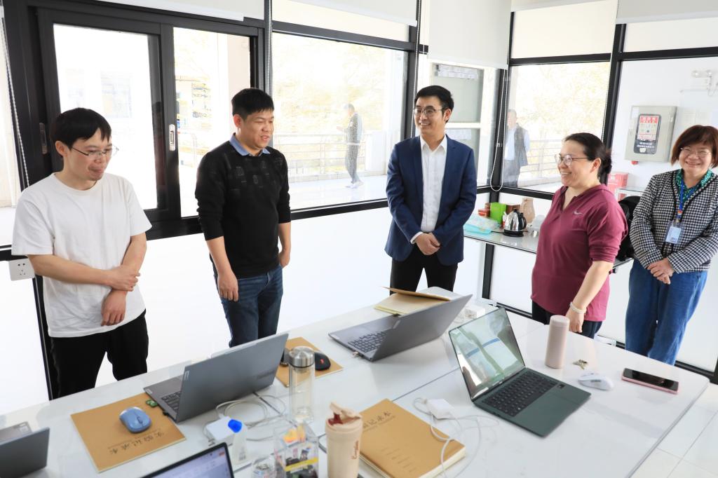 工作室里,青年博士教师们正在认真打磨国家自然科学基金青年科学基金项目申报书。卢清华听取各团队关于科研攻关、成果转化等工作的汇报,关切询问课题进展和教师工作生活情况,充分肯定他们潜心钻研、奋力攻关的干劲,勉励大家继续发扬严谨求实、勇于探索的精神,聚焦国家重大需求与地方重点产业,深耕专业领域,强化团队协作,在科研创新、人才培养、社会服务中勇担使命、再创佳绩。